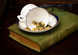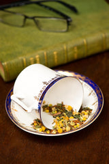 Rooibos tea, peppermint, camomile flowers, fennel, lemongrass balm, cardamom, valerian root, pollen, lavender blossoms, sage leaves.